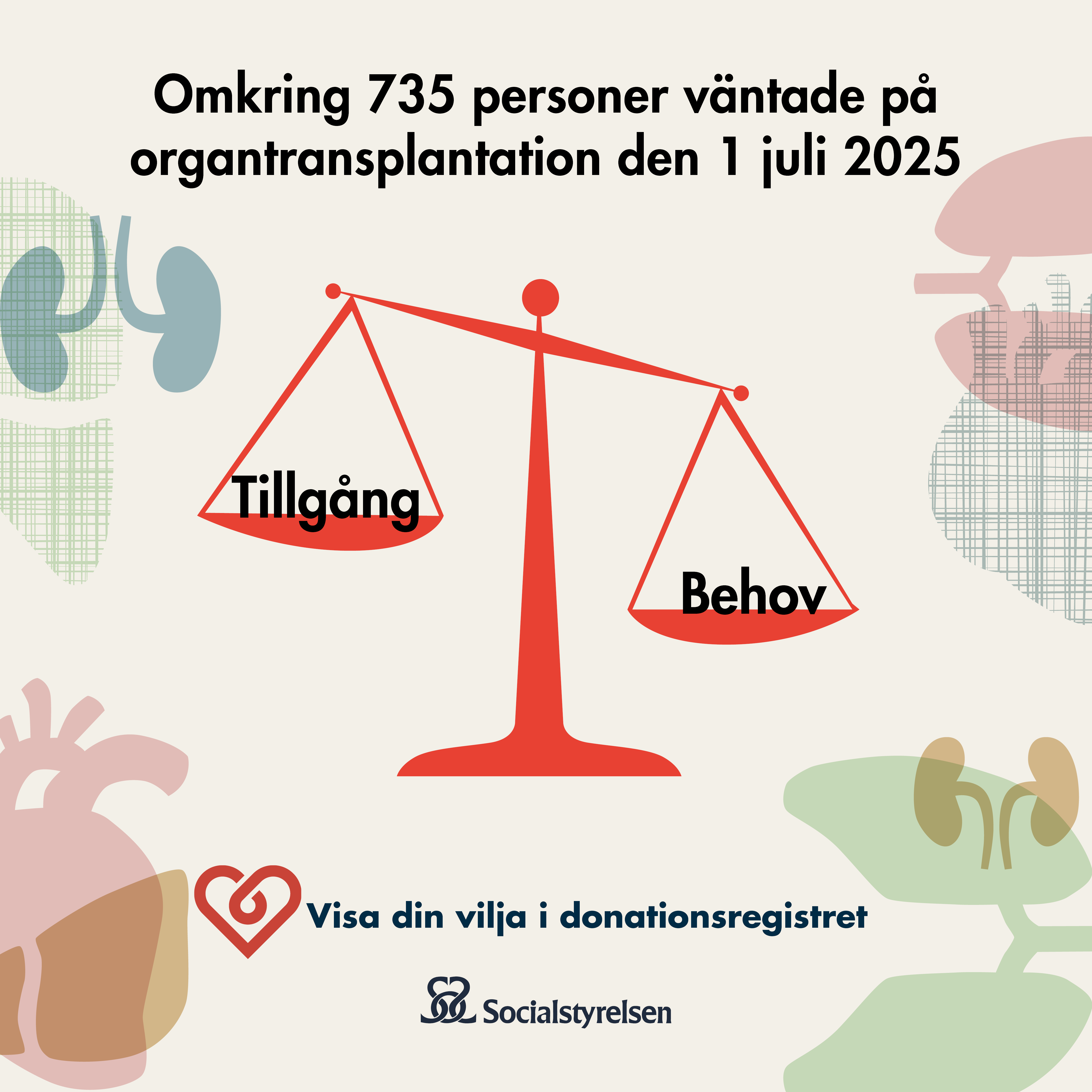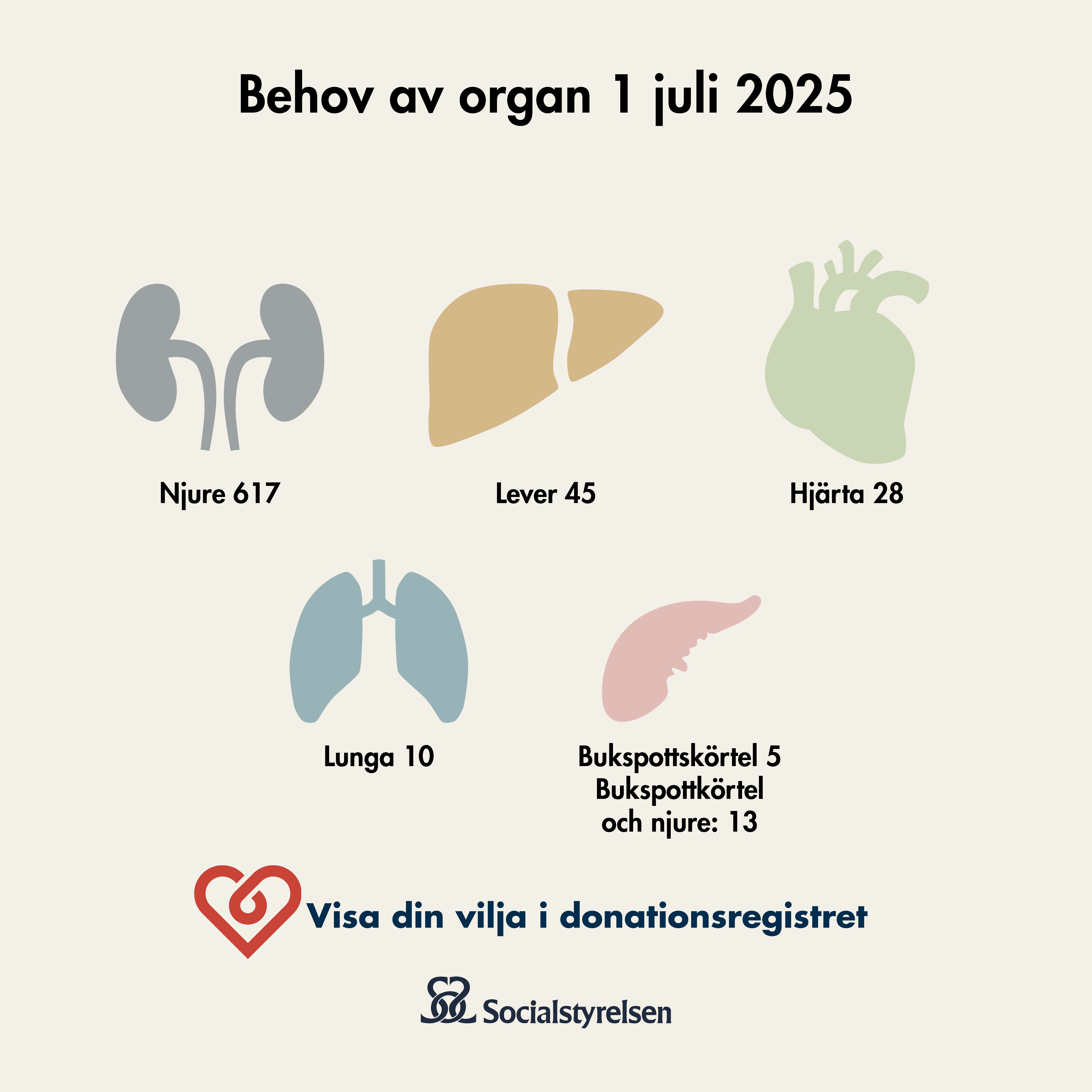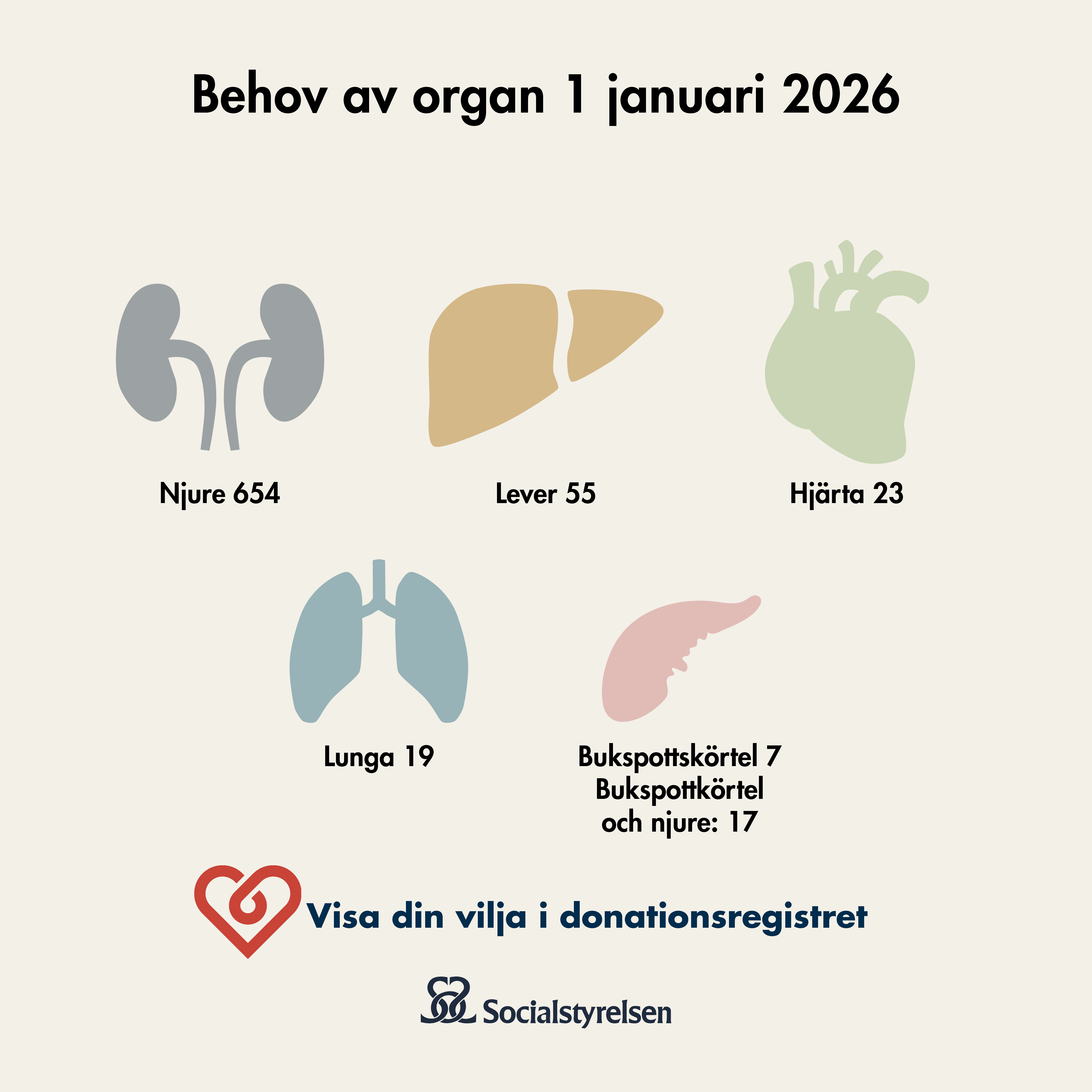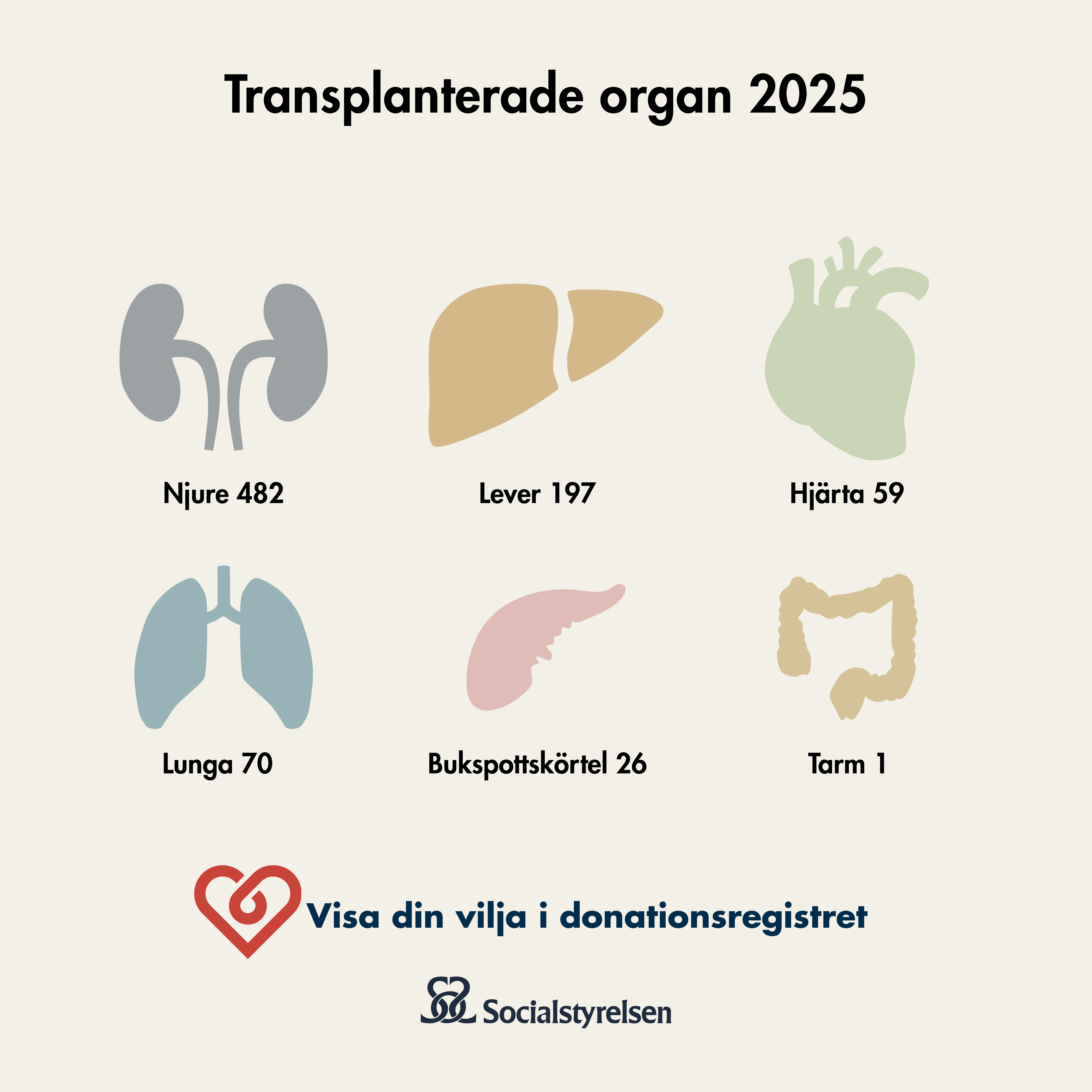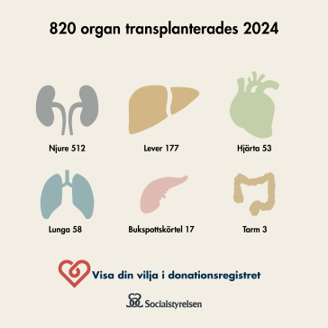 På den här sidan hittar du foton och informationsgrafik med aktuell statistik och annan fakta kring organ- och vävnadsdonation. Alla bilder utgår från konceptet Visa din vilja i Donationsregistret.